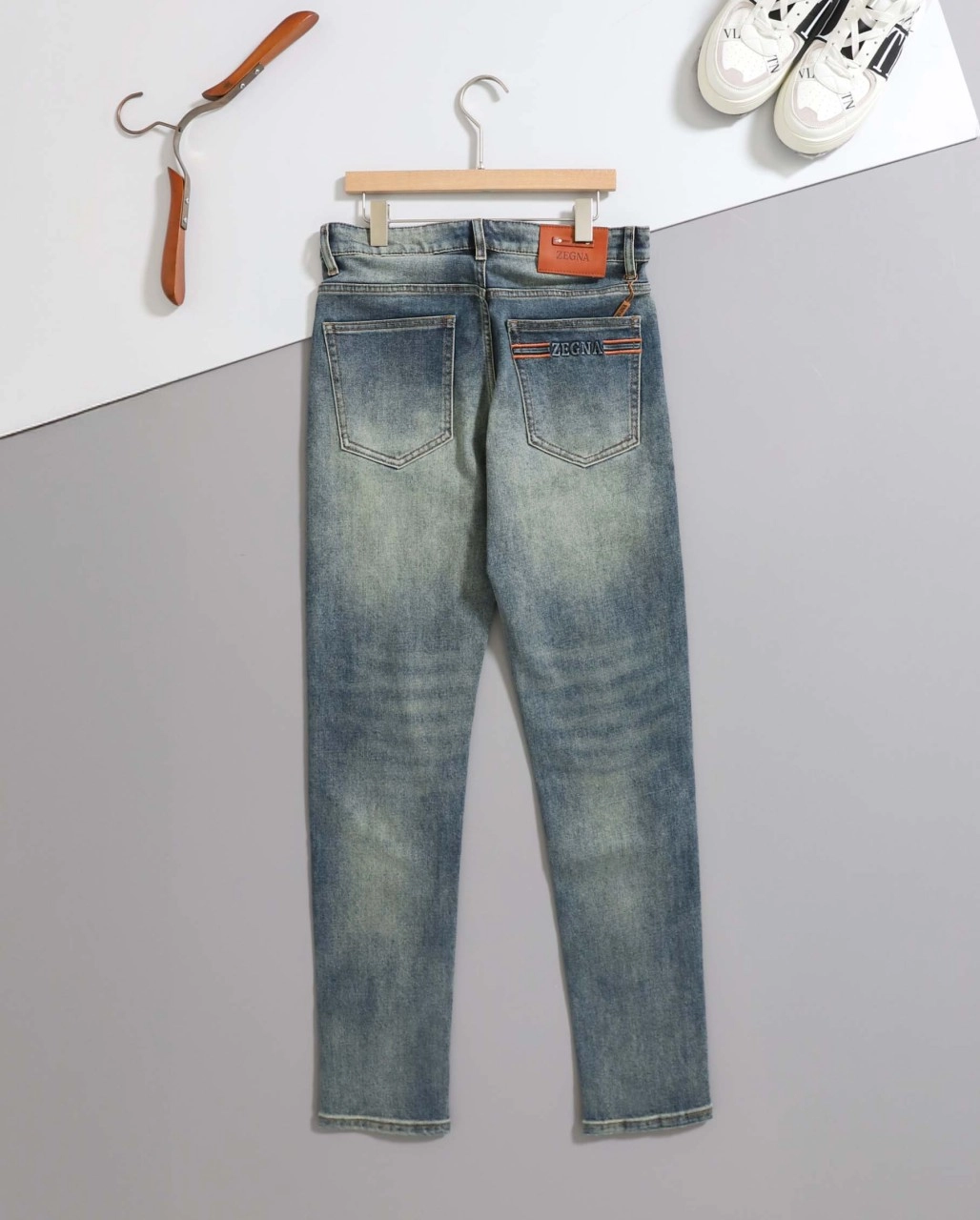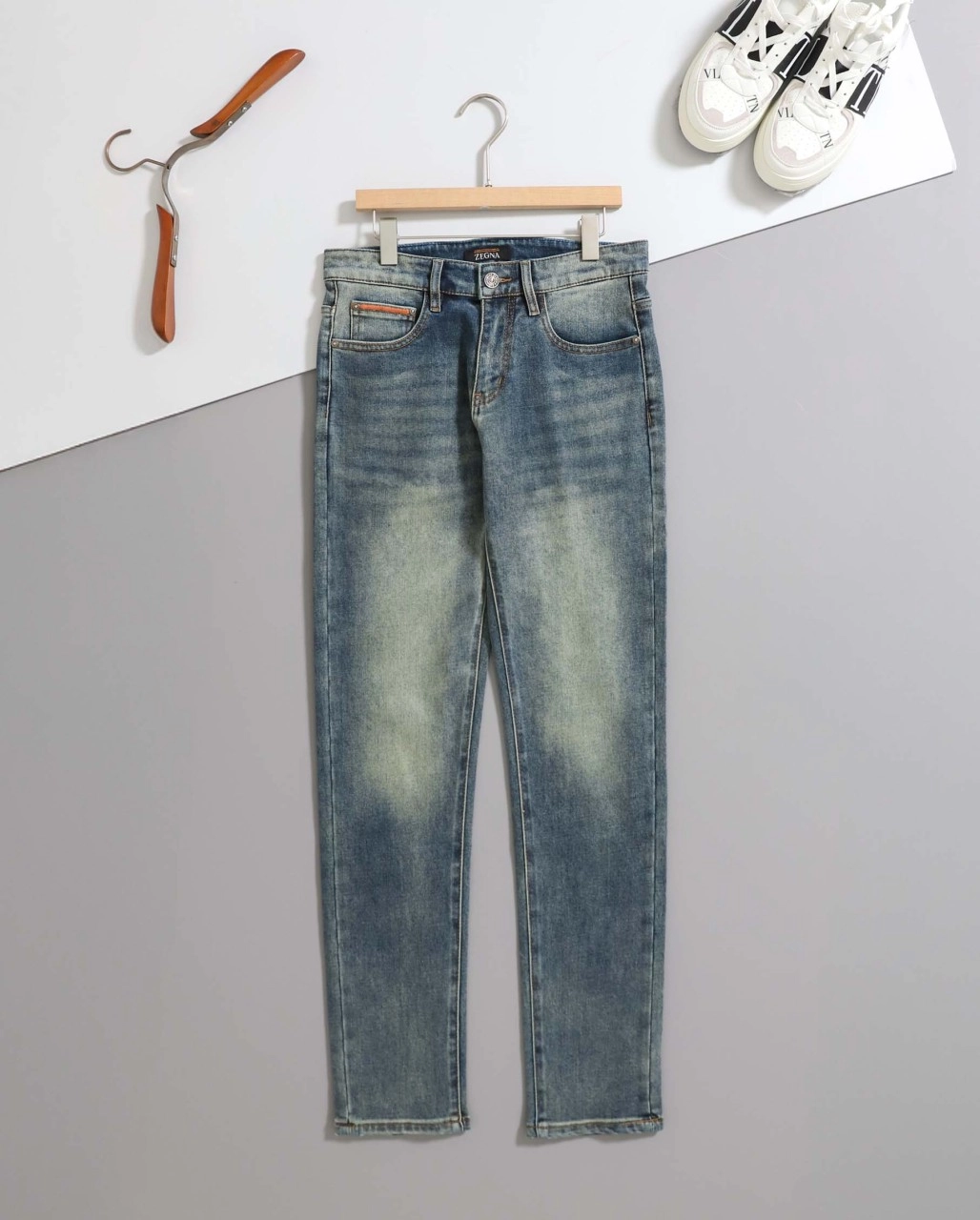 제냐 [ Z*gna ] 수입 브라운 레더 패치 스판 데님 팬츠 입고 💢 #남성하의 #청바지