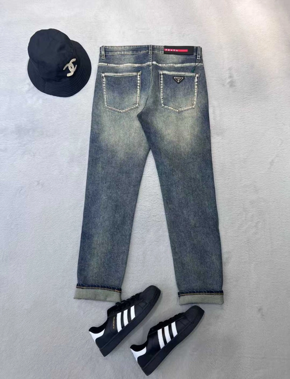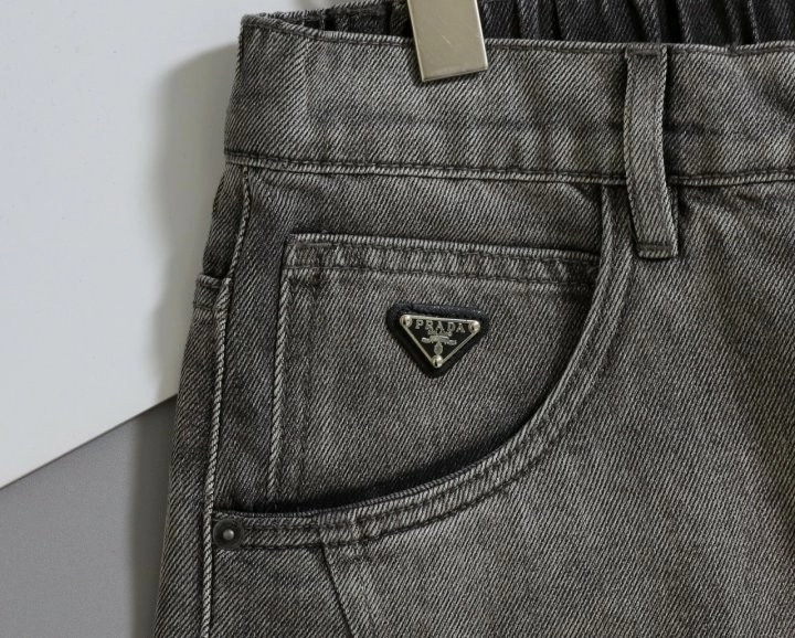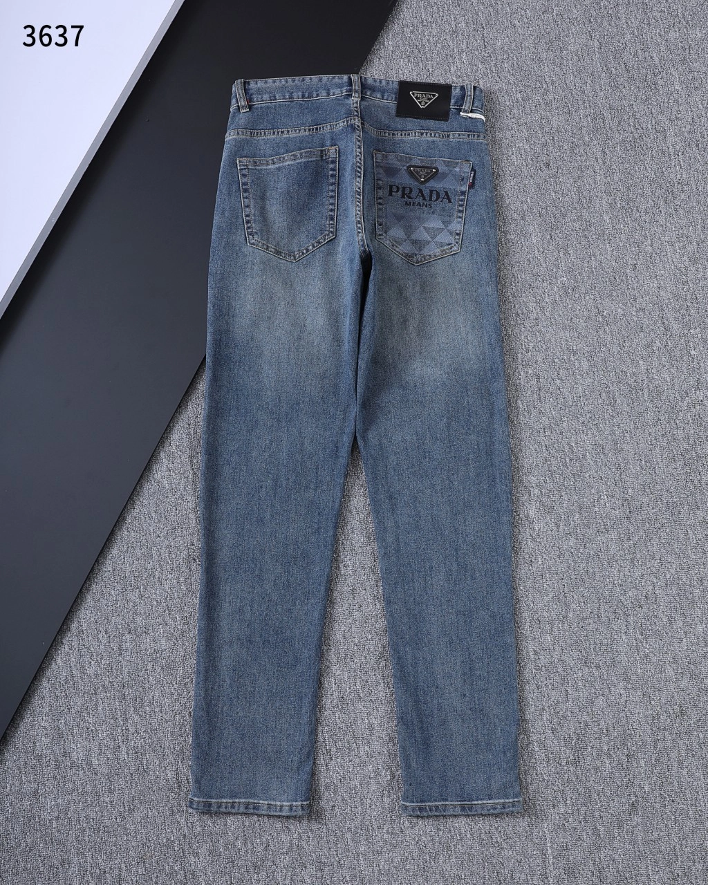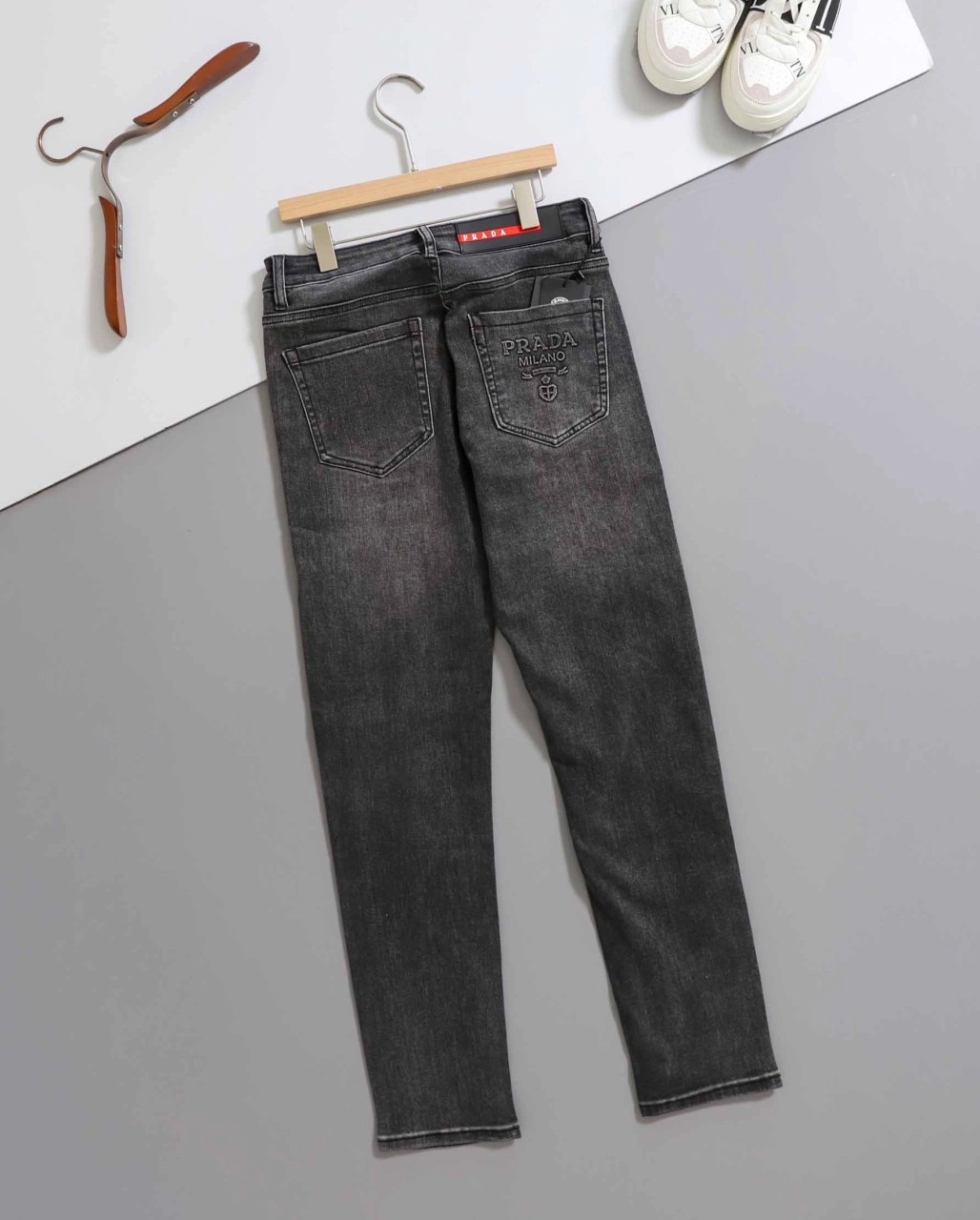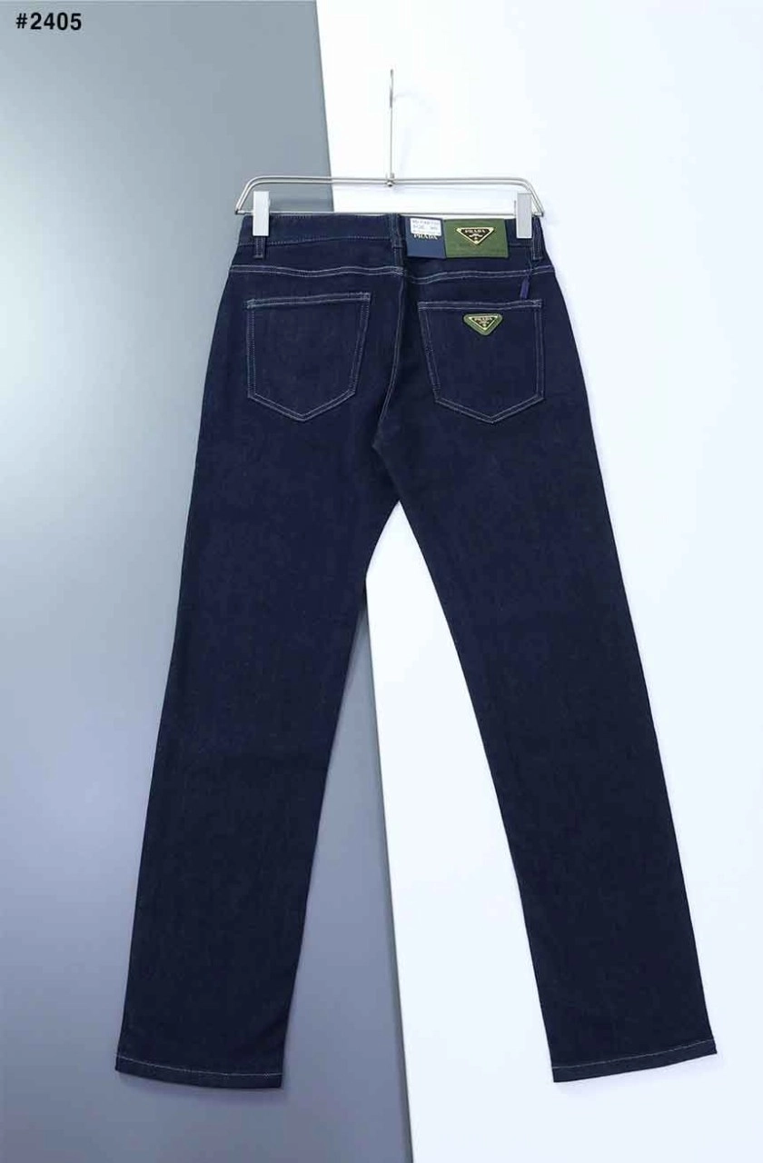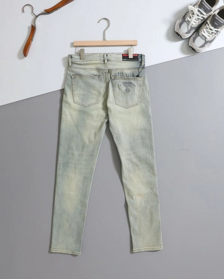 프라다 백포켓 포인트 파츠로고 스판 워싱데님진