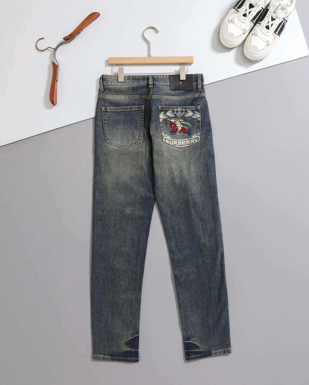 버버리 [ B*RBERRY ] 수입 포켓 기사도 로고 자수 스판 데님 팬츠 입고 💢 #남성하의 #청바지