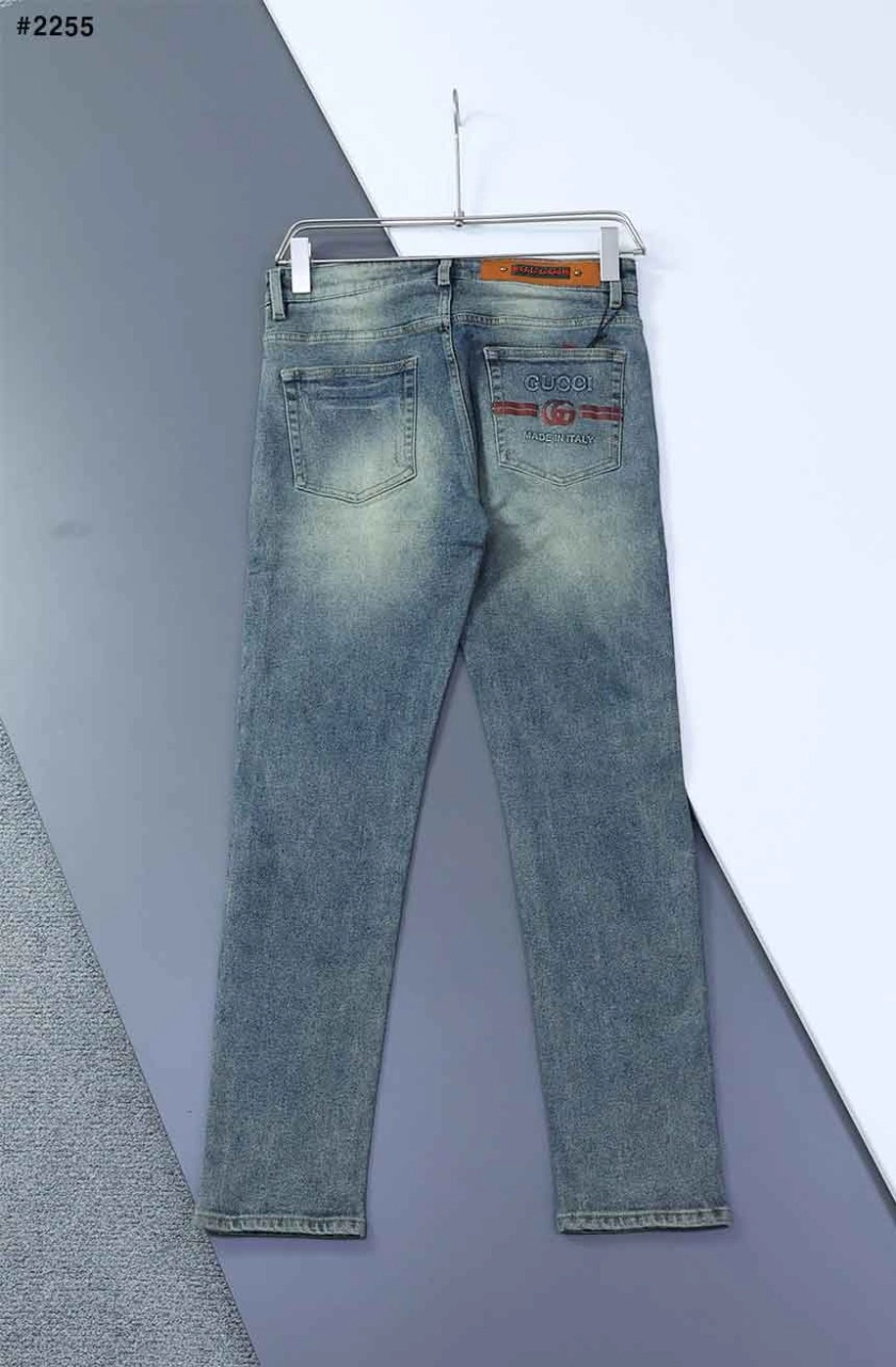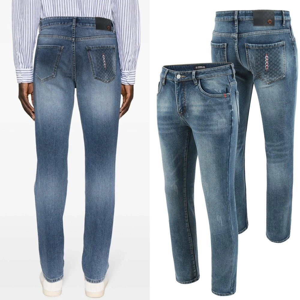 구찌 자가드 레터링자수 융기모 청바지