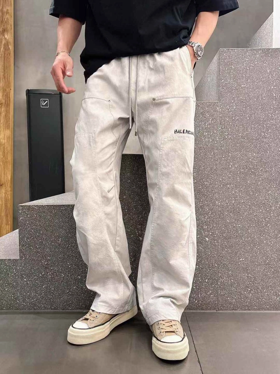 발렌시아가 자수패치 로고 세미와이드 밴딩팬츠