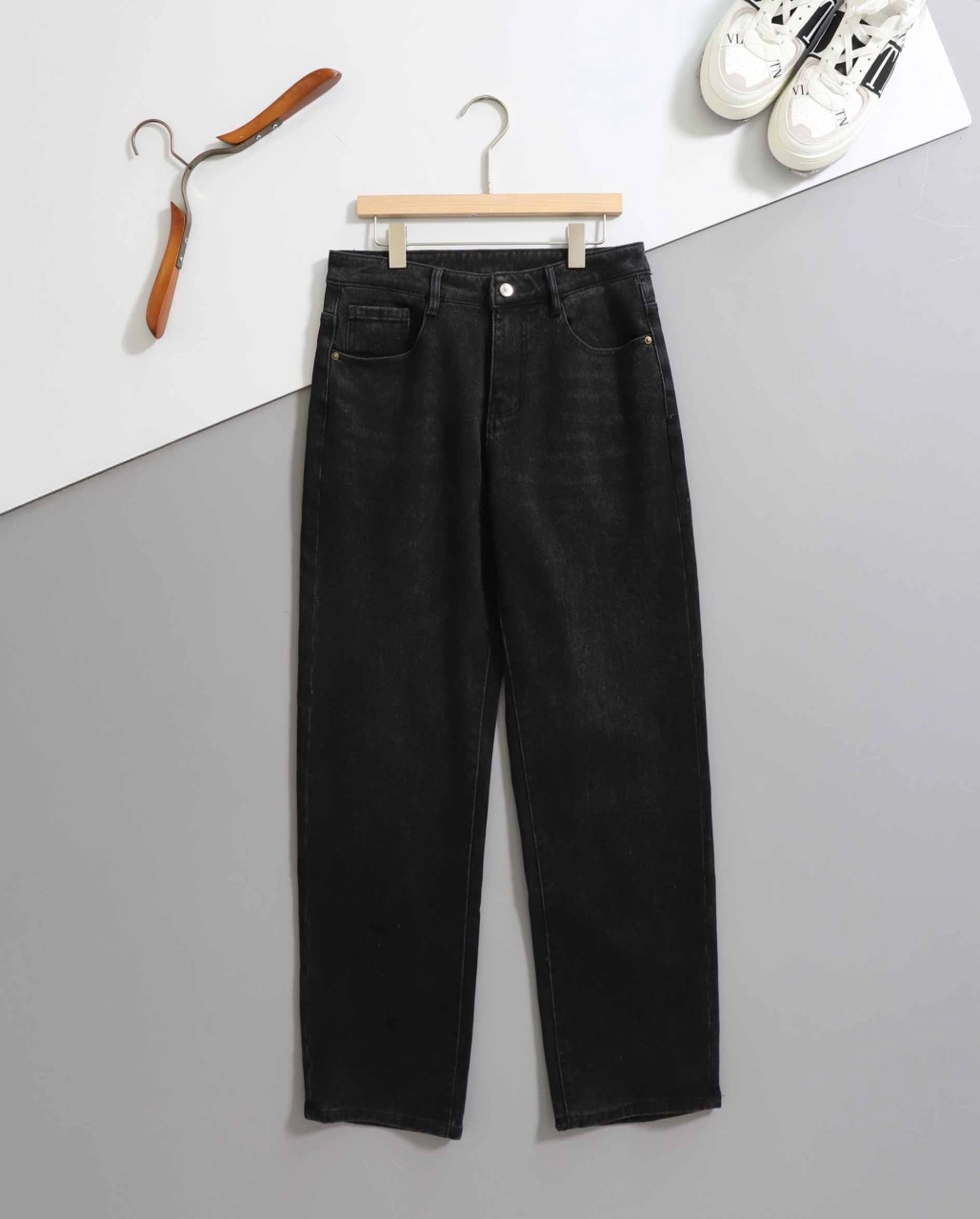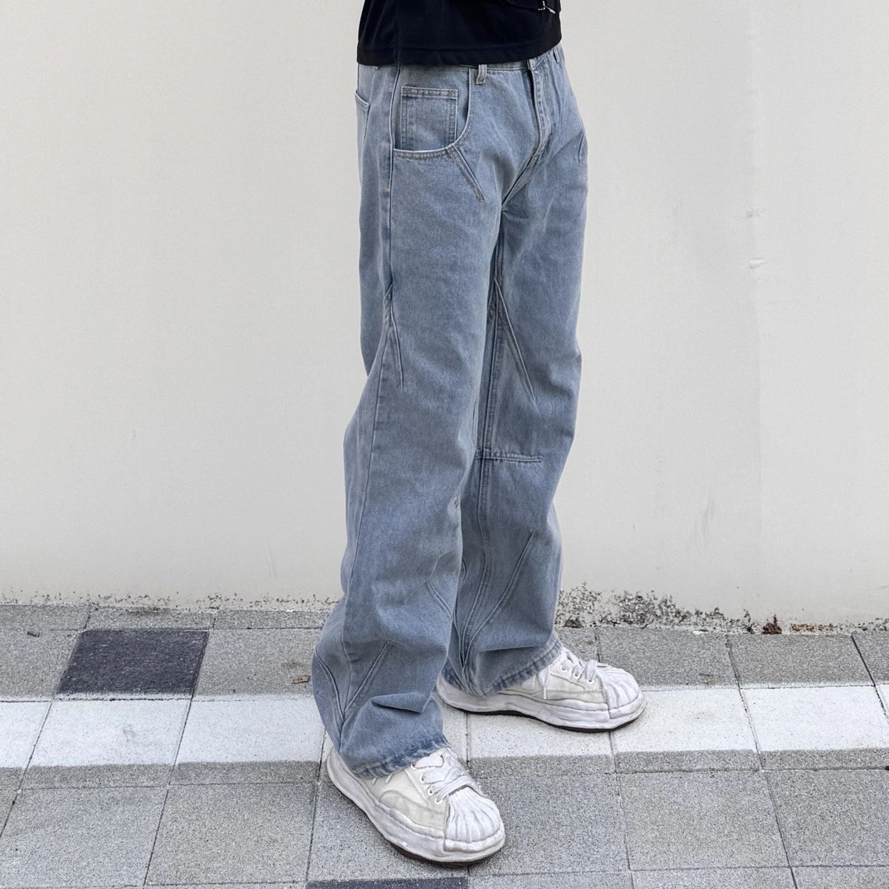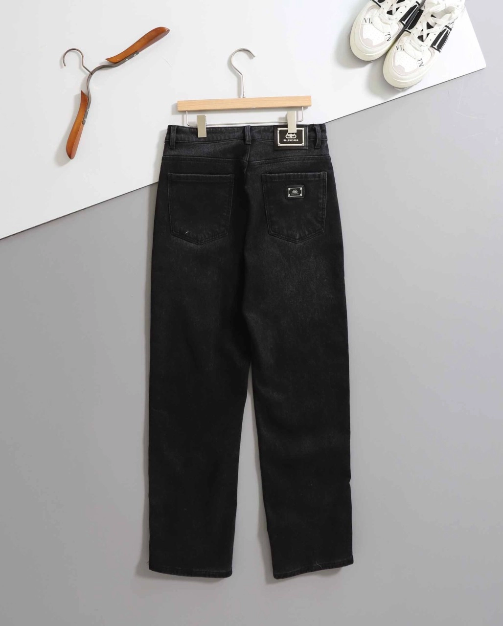 발렌시아가 [ B*lenciaga ] 미드 라이즈 스트레이트 기모 블랙 데님 팬츠 입고 💢 #남성하의 #청바지