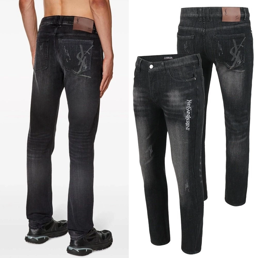입생로랑 YS 레터링 자수 융기모 청바지
