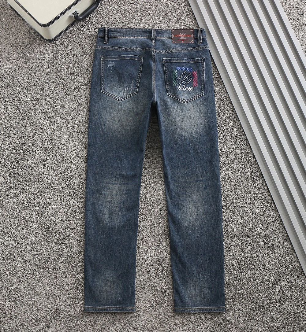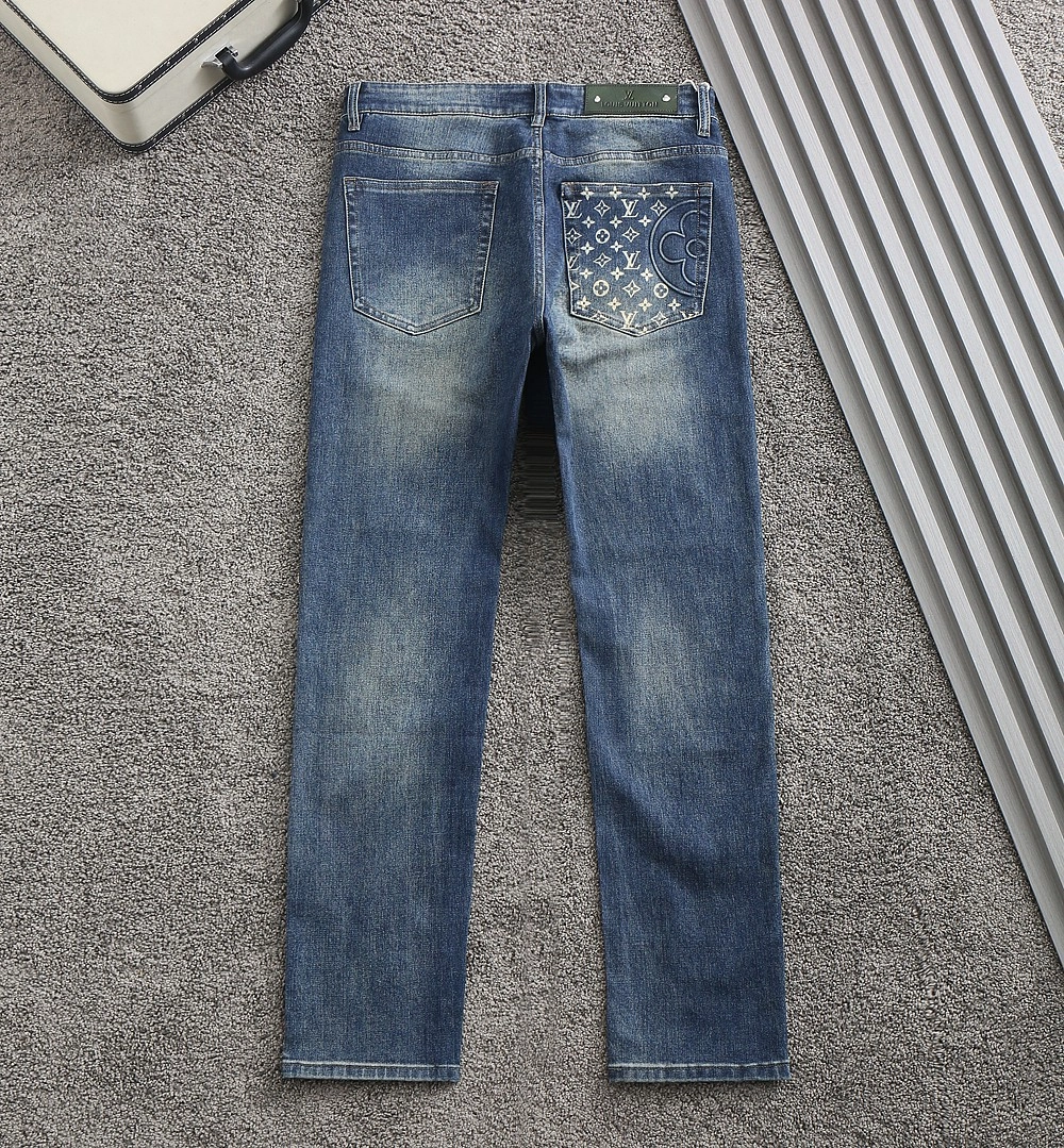 루이비통 백포켓 포인트 엠보로고 스판 데님 워싱진