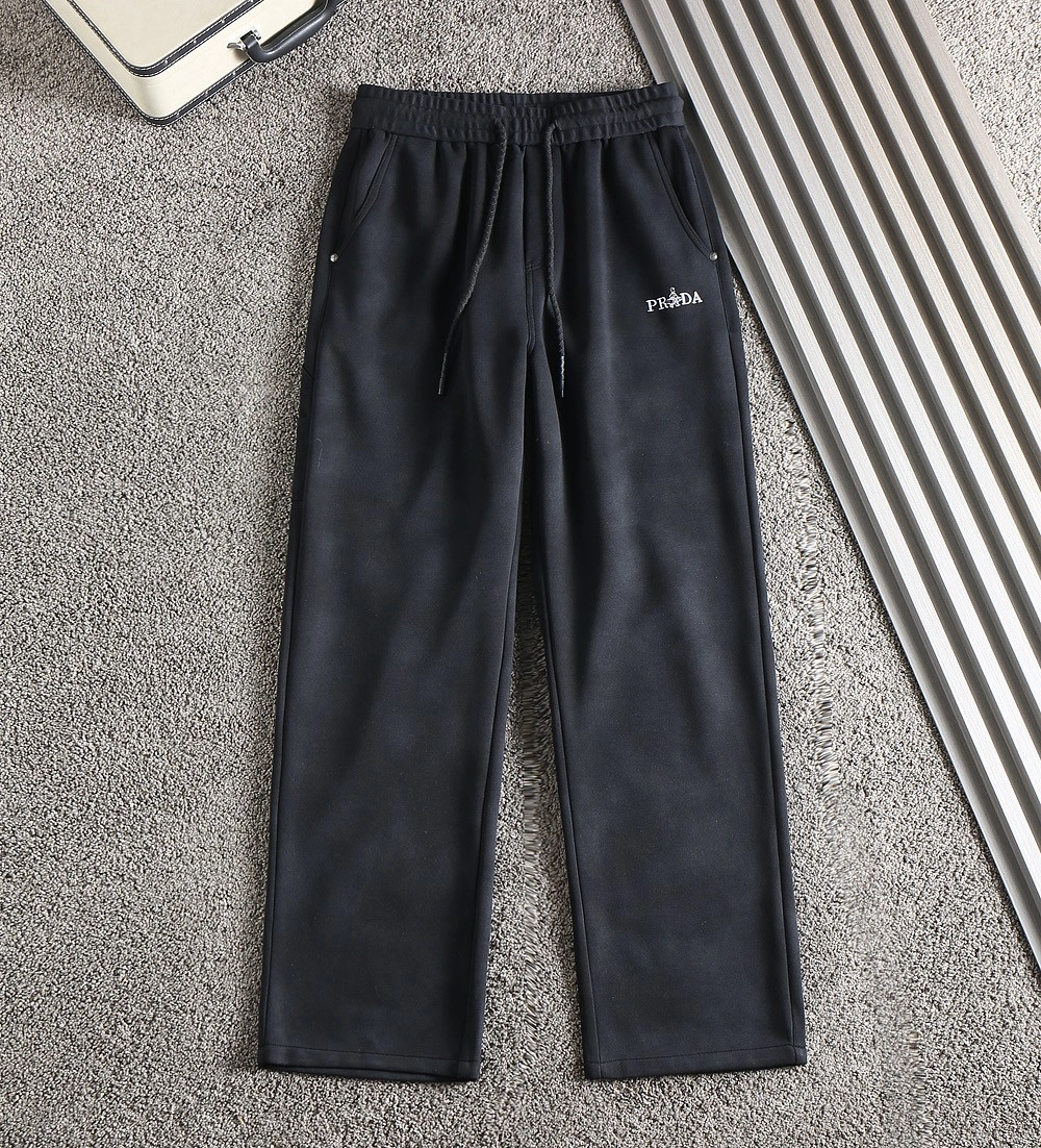 프라다 💥신상 휴먼멀티 엠보자수로고 세미와이드 팬츠