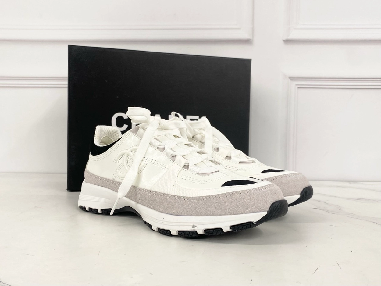 샤넬 스니커즈 샤이니 카프스킨 스웨이드 카프스킨