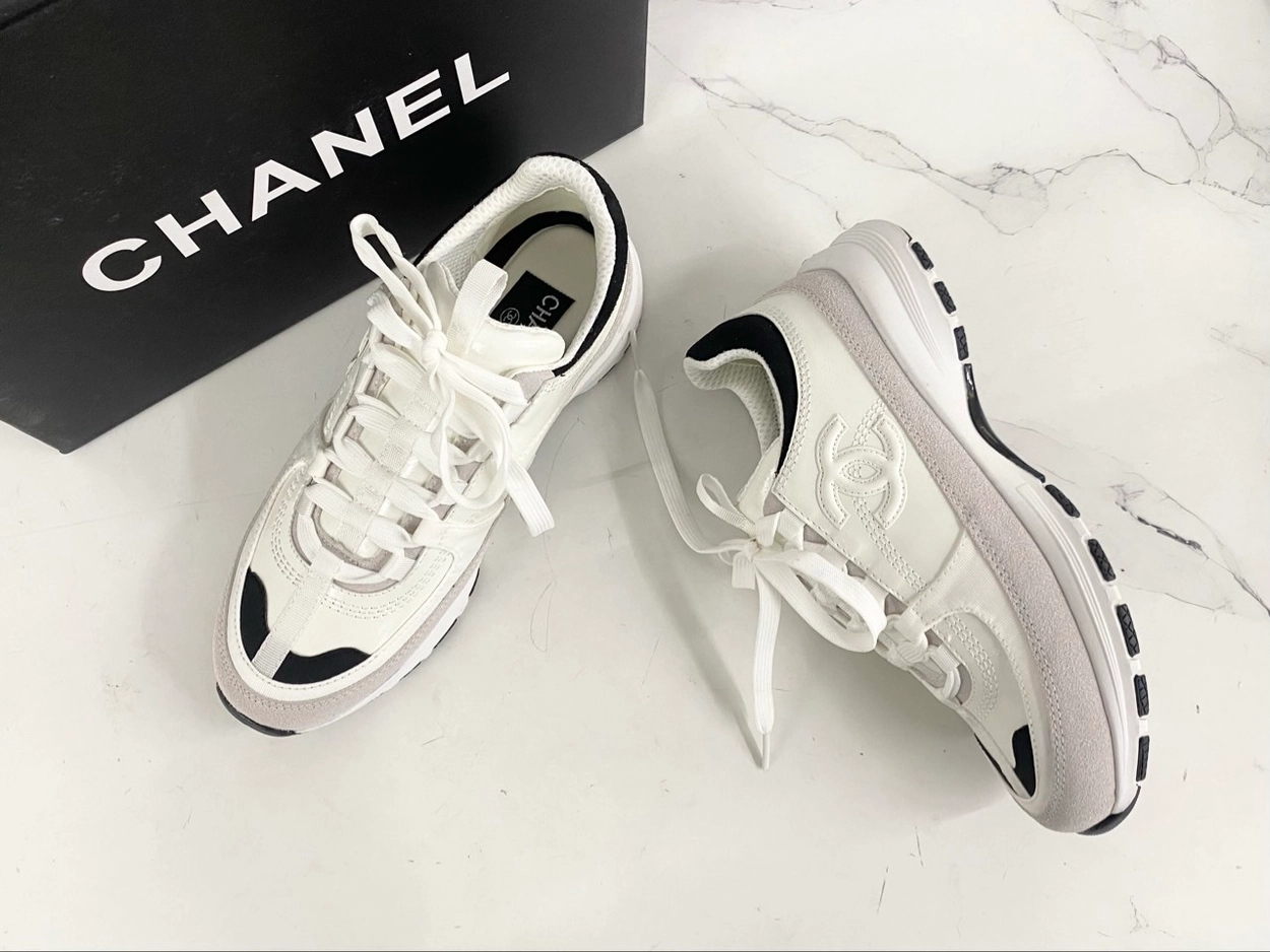 샤넬 스니커즈 카프스킨 & 엠보스드 스웨이드 카프스킨