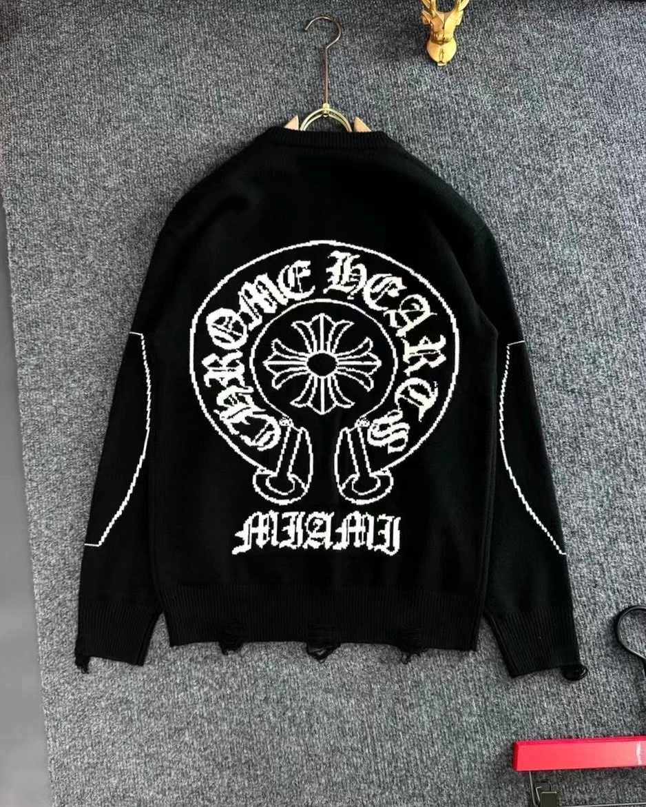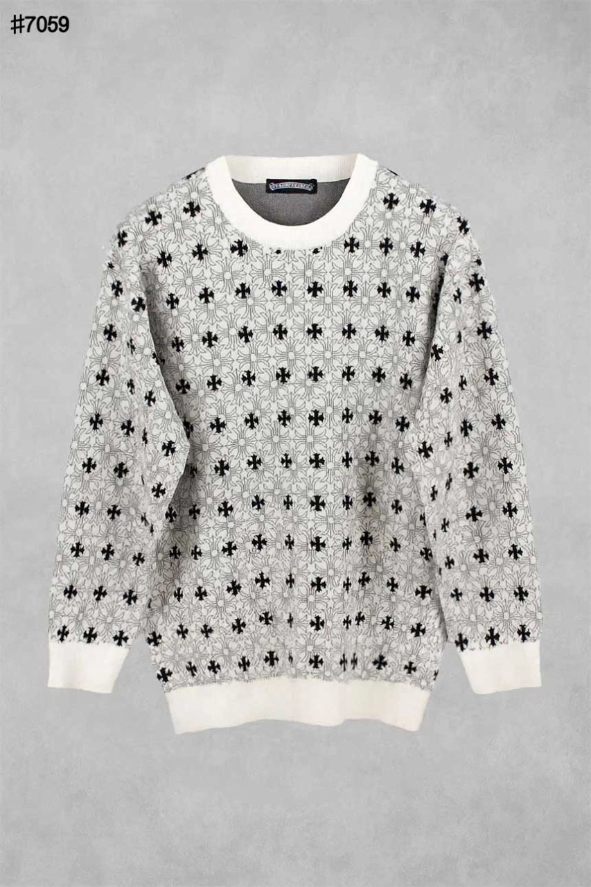 [Chrome Herts] 크롬하츠 세메테리 자카드 패턴 울 니트 풀오버 🍀 #7059