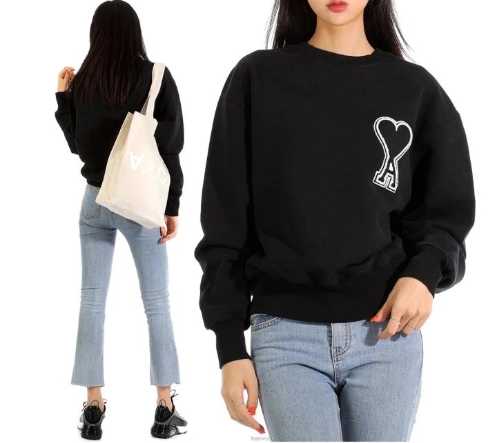 [AMI] 아미 빅하트 로고 패치 기모 맨투맨