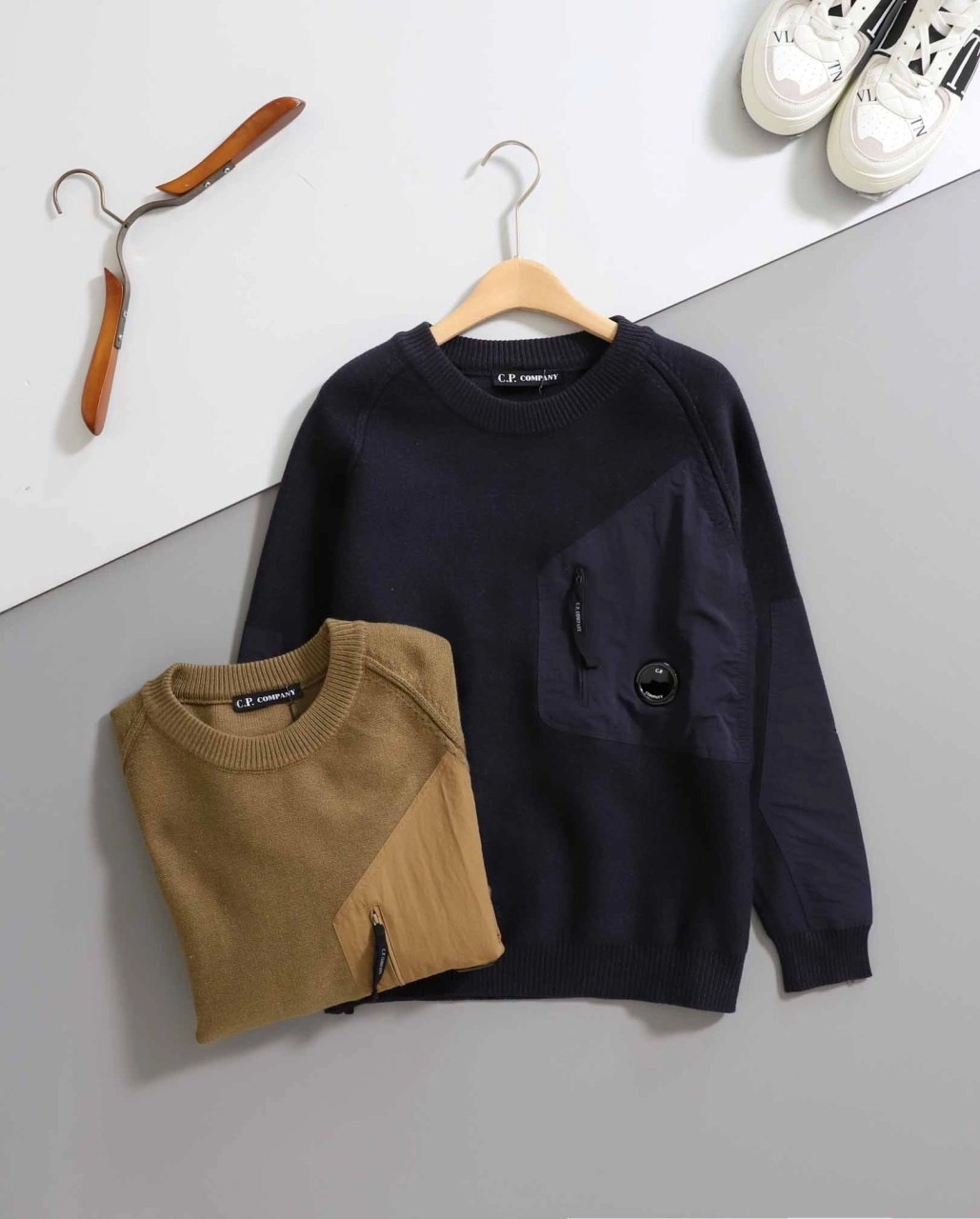 시피컴퍼니 [ C.P ] 가슴 지퍼 포켓 니트 스웨터 입고💢 #남성상의 #니트스웨터