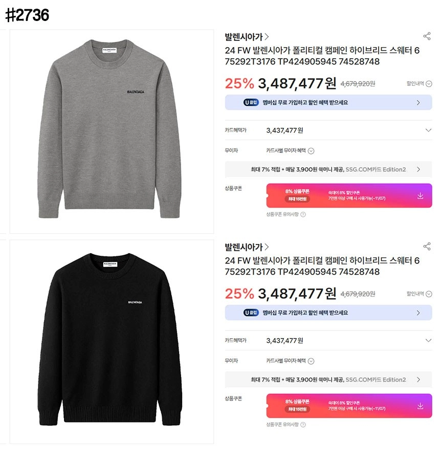 [BALENCIAGA] 발렌시아가 BB 자수 클래식 라운드 니트🍀 #2931