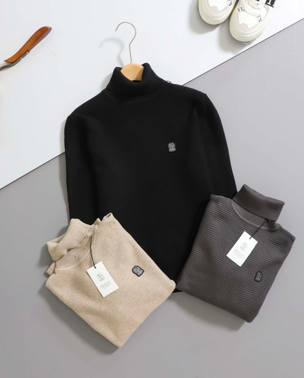 브루넬로쿠치넬리 [ B*unello Cucinell ] 로고 패치 와플 니트 터틀넥 스웨터 입고💢 #남성상의 #터틀넥스웨터