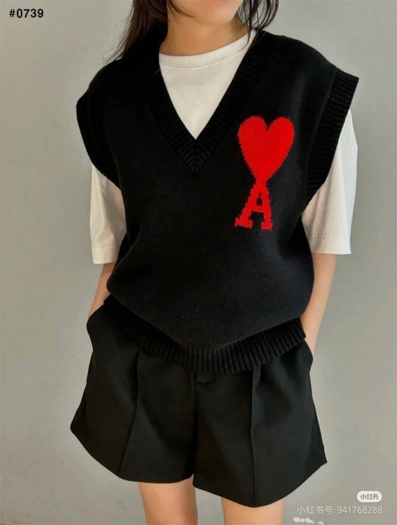 [AMI] 아미 빅하트 로고 슬리브리스 스웨터 레드 하트 🍀 #0739