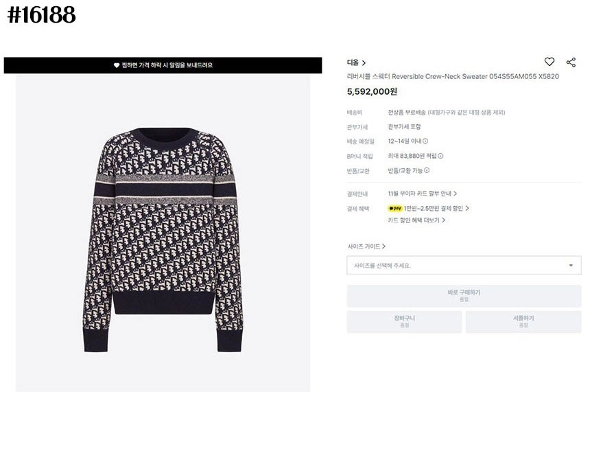 [DIOR] 디올 오블리크 울 자카드 니트 풀오버 🍀 #16188 #8562