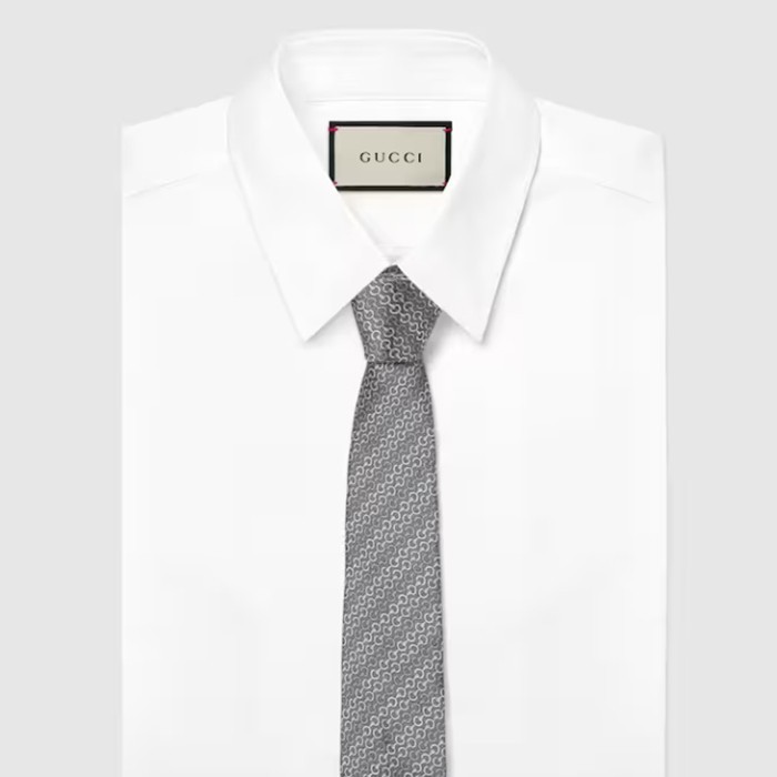 구찌 홀스빗 실크 자카드 타이